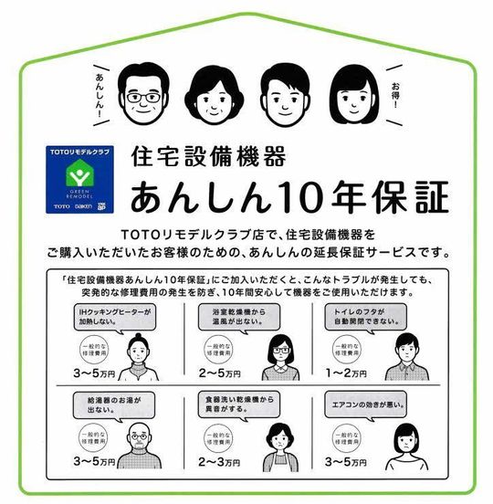 ・「住宅設備機器あんしん10年保証」は、メーカー保証終了後も修理保証規定に基づいて無料修理が受けられるサービスです。