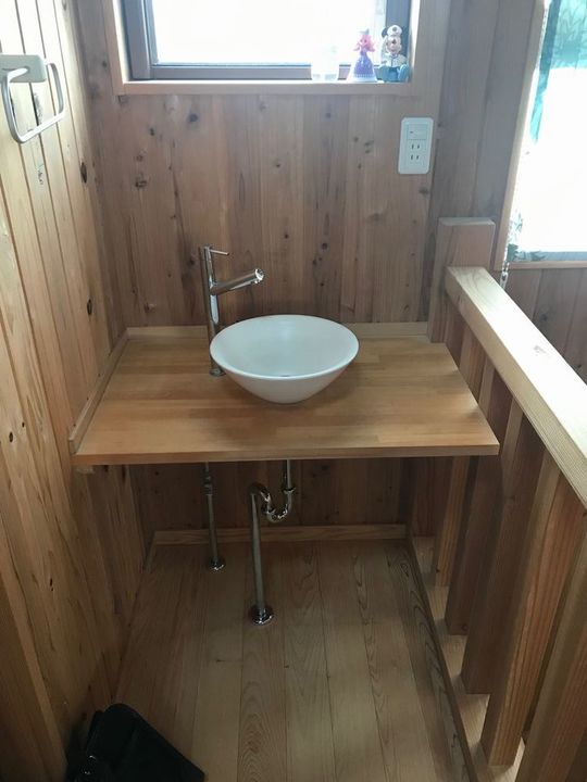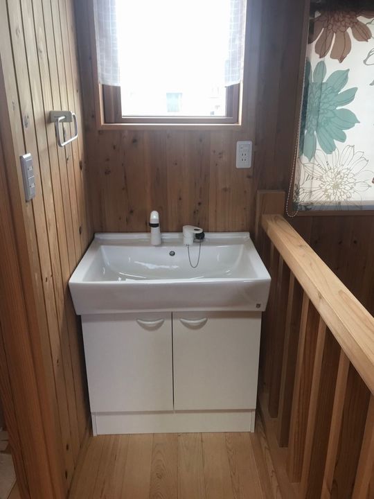 手洗い器を電気温水器付きの洗面台にリフォーム!